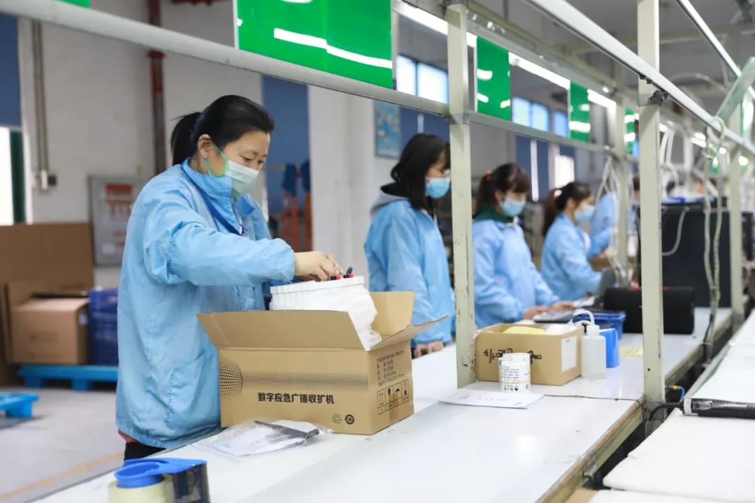 ? ? ? 在生產線可以看到,工人們正在加緊完成銷往海外的機頂盒訂單、應急廣播系統設備的生產,以及人臉核驗終端及測溫掃碼產品的組裝。