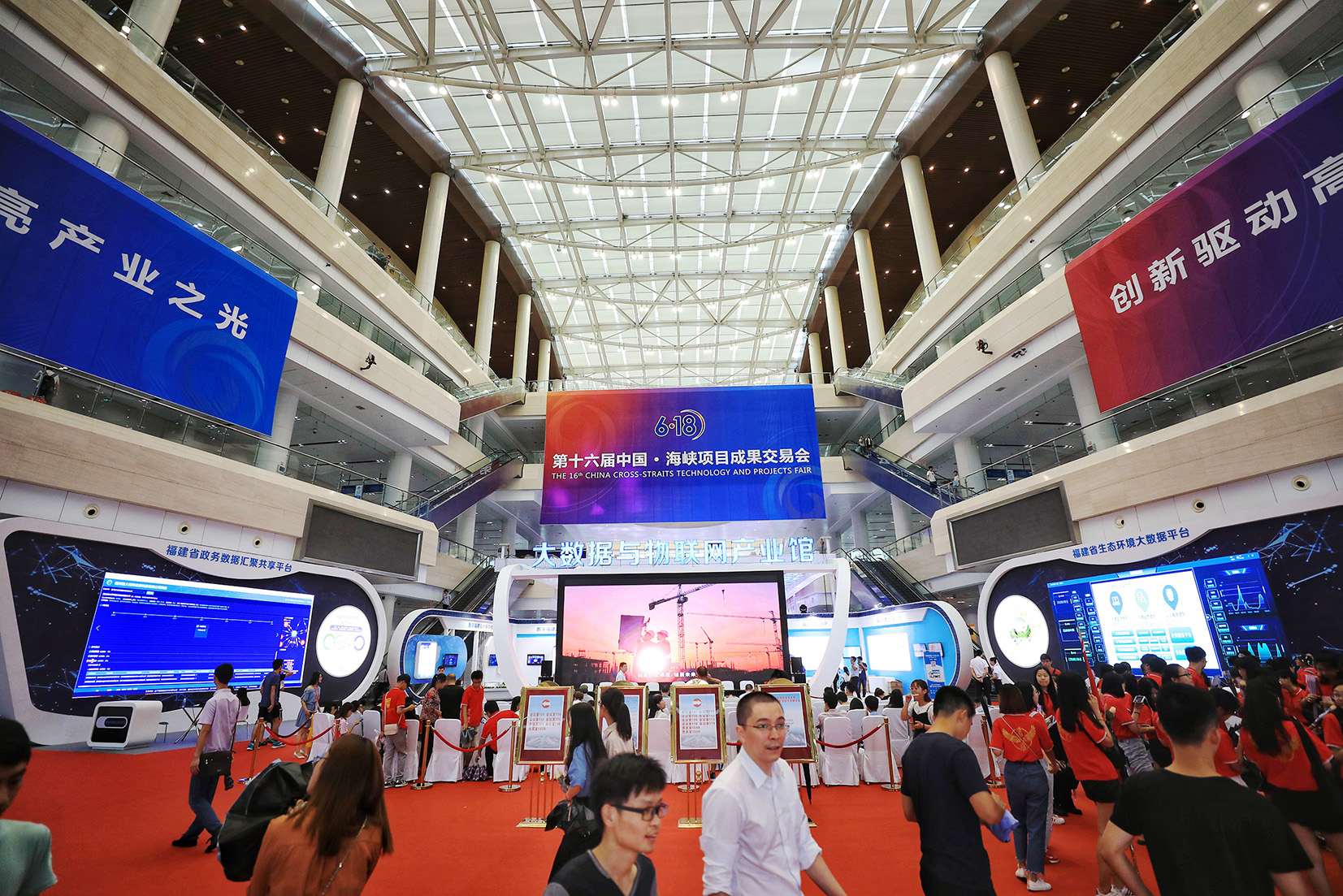 ????2018年6月18日-21日,第十六屆中國·海峽項目成果交易會(簡稱“6·18”)在福州海峽國際會展中心舉行,本次展會以“創新驅動高質量發展”為主題,吸引了1500多家企業參展。新大陸科技集團攜最新的物聯網創新成果、“數字公民”創新應用亮相中心館(大數據與物聯網館)A6展位。