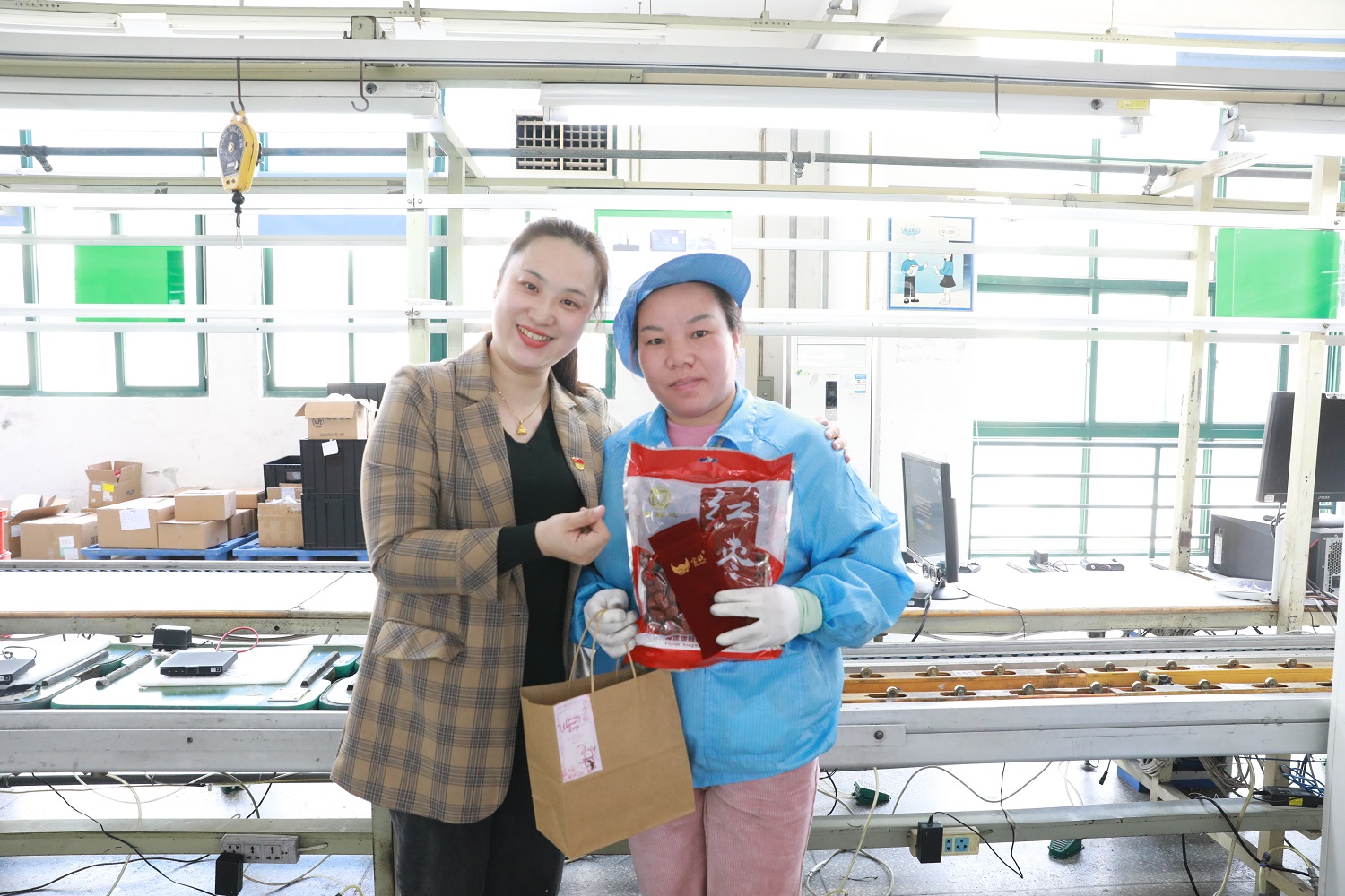 ??? 3月7日上午,公司黨支部、工會干部代表一行前往閩侯新大陸制造中心和馬尾飛毛腿工廠生產一線,親切慰問女職工,向女神們表達節日祝福和衷心感謝。?天創工會主席劉婭秋稱贊道,在難忘歲月里,女職工們為公司建設、小家經營,把半邊天撐起,在多重角色的轉換中,巾幗不讓須眉,營造絢爛和旖旎。